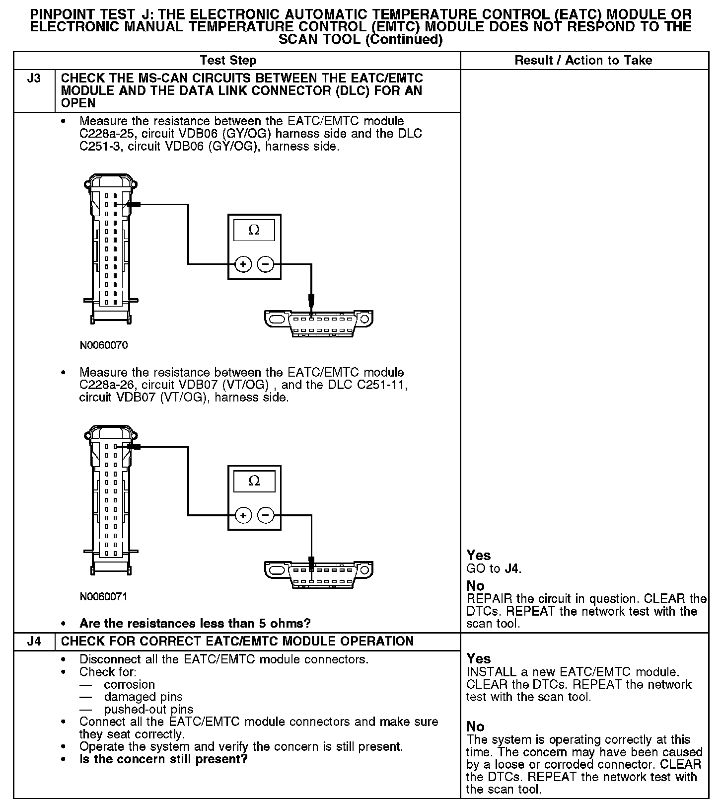 Test J: The Electronic Automatic Temperature Control (EATC) Module Or Electronic Manual Temperature Control (EMTC) Module Does