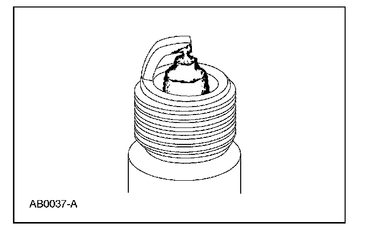 5. Inspect for pre-ignition, identified by melted electrodes and a possibly damaged insulator. Metallic deposits on the insulator indicate engine damage. This may be caused by incorrect ignition timing, wrong type of fuel or the unauthorized installation of a Heli-Coil(R)-coil insert in place of the spark plug threads.