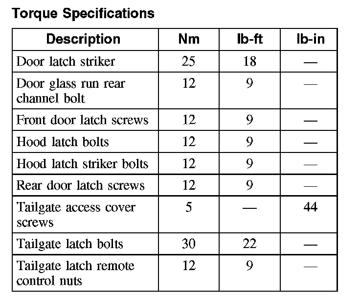 Torque Specifications: