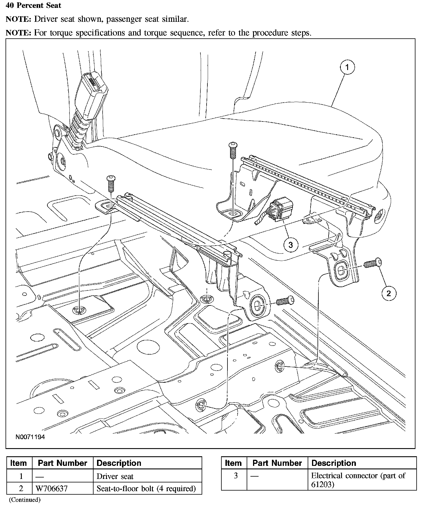 NOTE: The seat track-to-floor bolts must be tightened in the sequence described in this procedure.