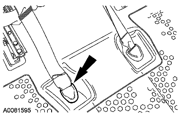 - If equipped, release and pull the front center safety belt bolt cover upward on the front center safety belt.