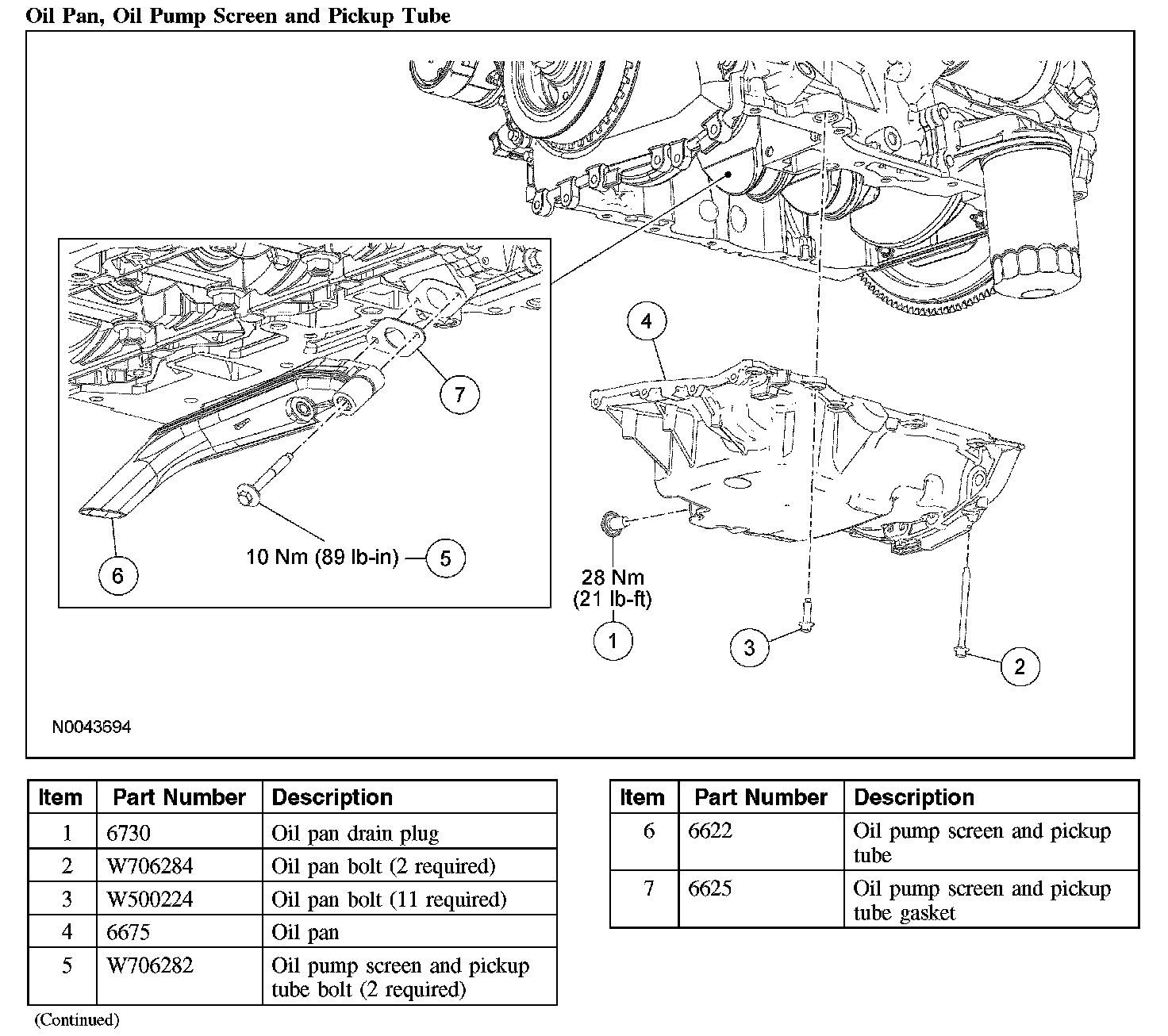 Oil Pan, Oil Pump Screen and Pickup Tube: