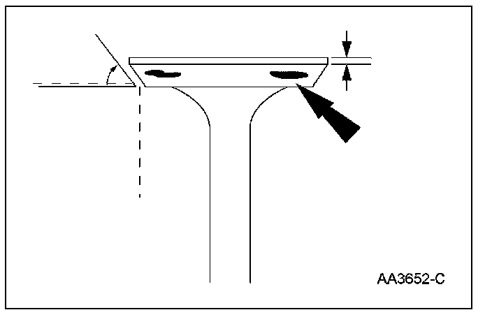 2. Inspect for abnormalities on the valve face and seat. Install a new cylinder head assembly if abnormalities are found.