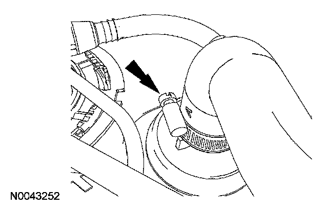 3. Loosen the fuel tank filler pipe hose-to-fuel tank clamp.