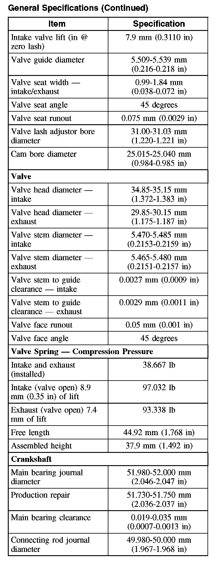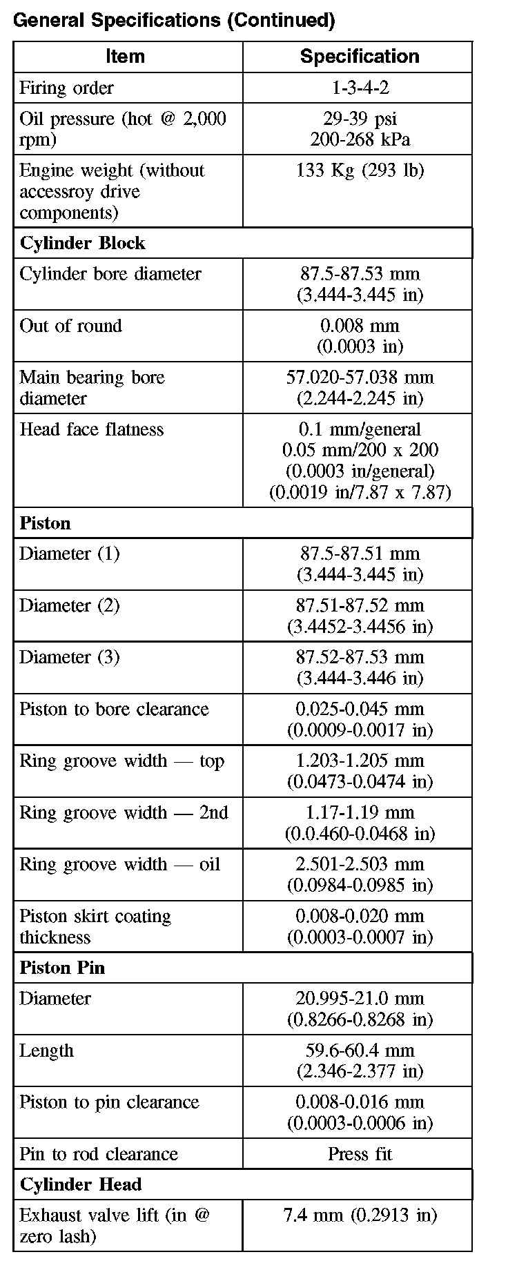 General Specifications