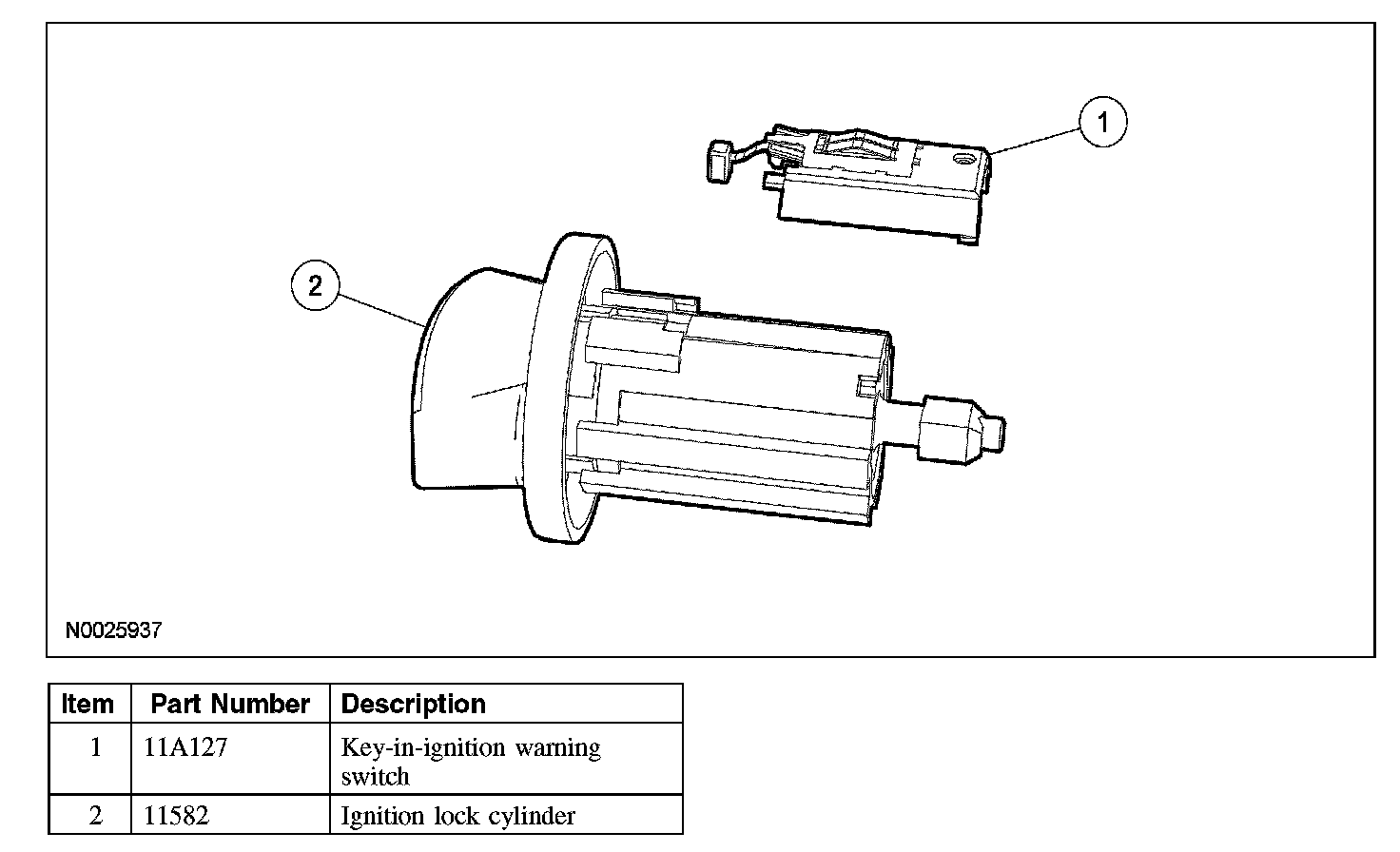 2 Release the key-in-ignition warning switch from the rear of the ignition lock cylinder.
