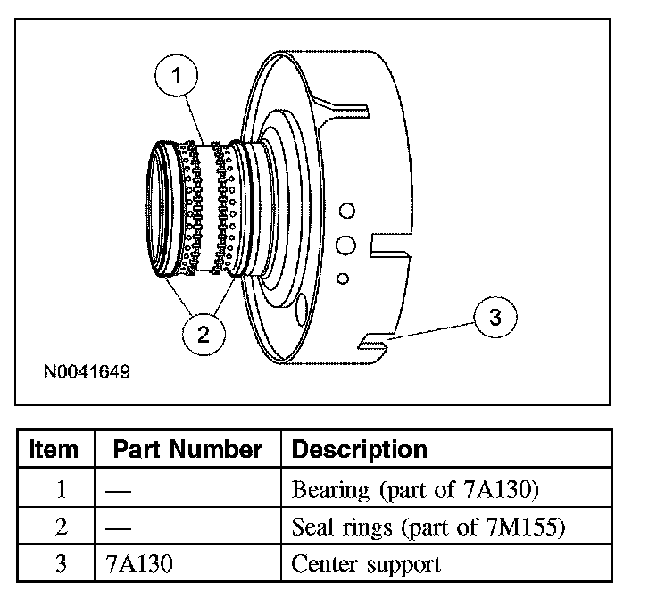 NOTE: The center support is serviced as an assembly. Any damage to the center support will require the installation of a new center support.