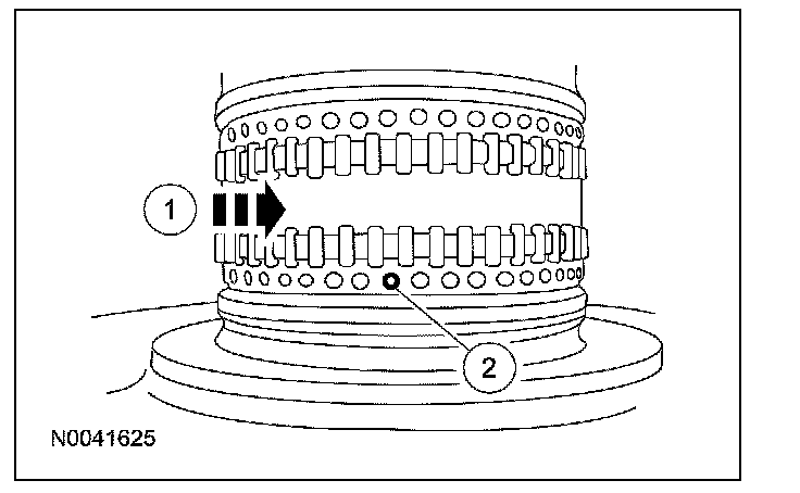 1 Rotate the center support bearing to locate the direct clutch feed hole.
