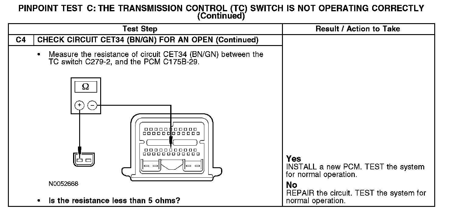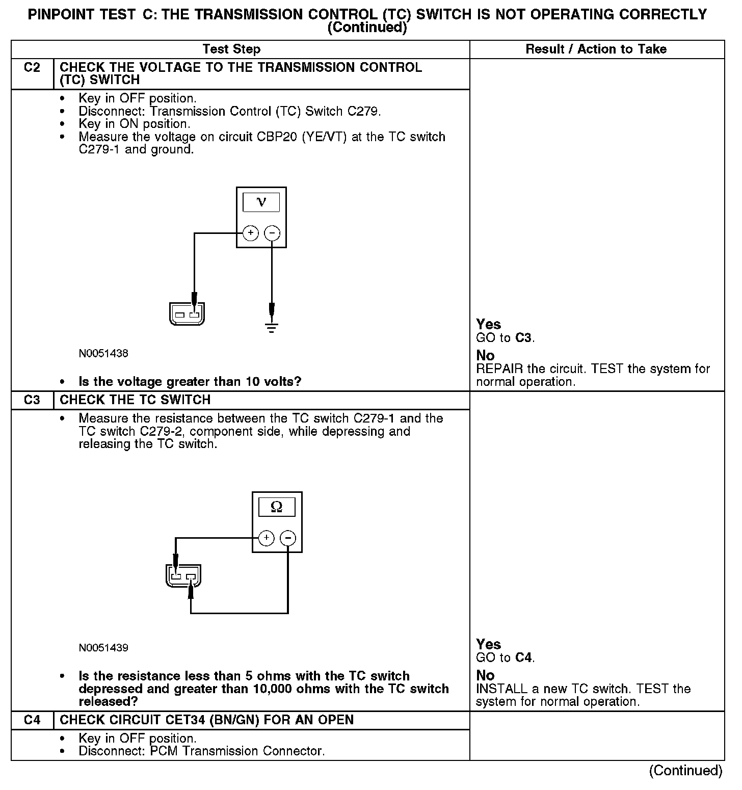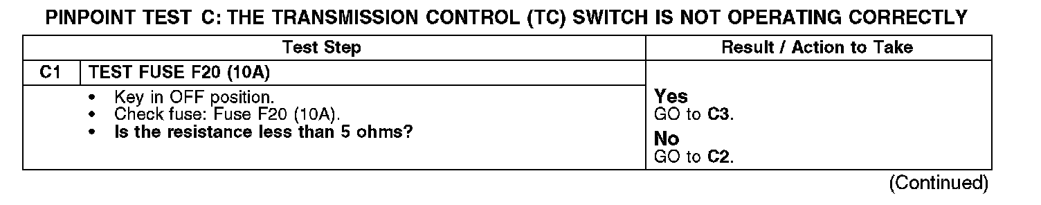 PINPOINT TEST C: THE TRANSMISSION CONTROL (TC) SWITCH IS NOT OPERATING CORRECTLY
