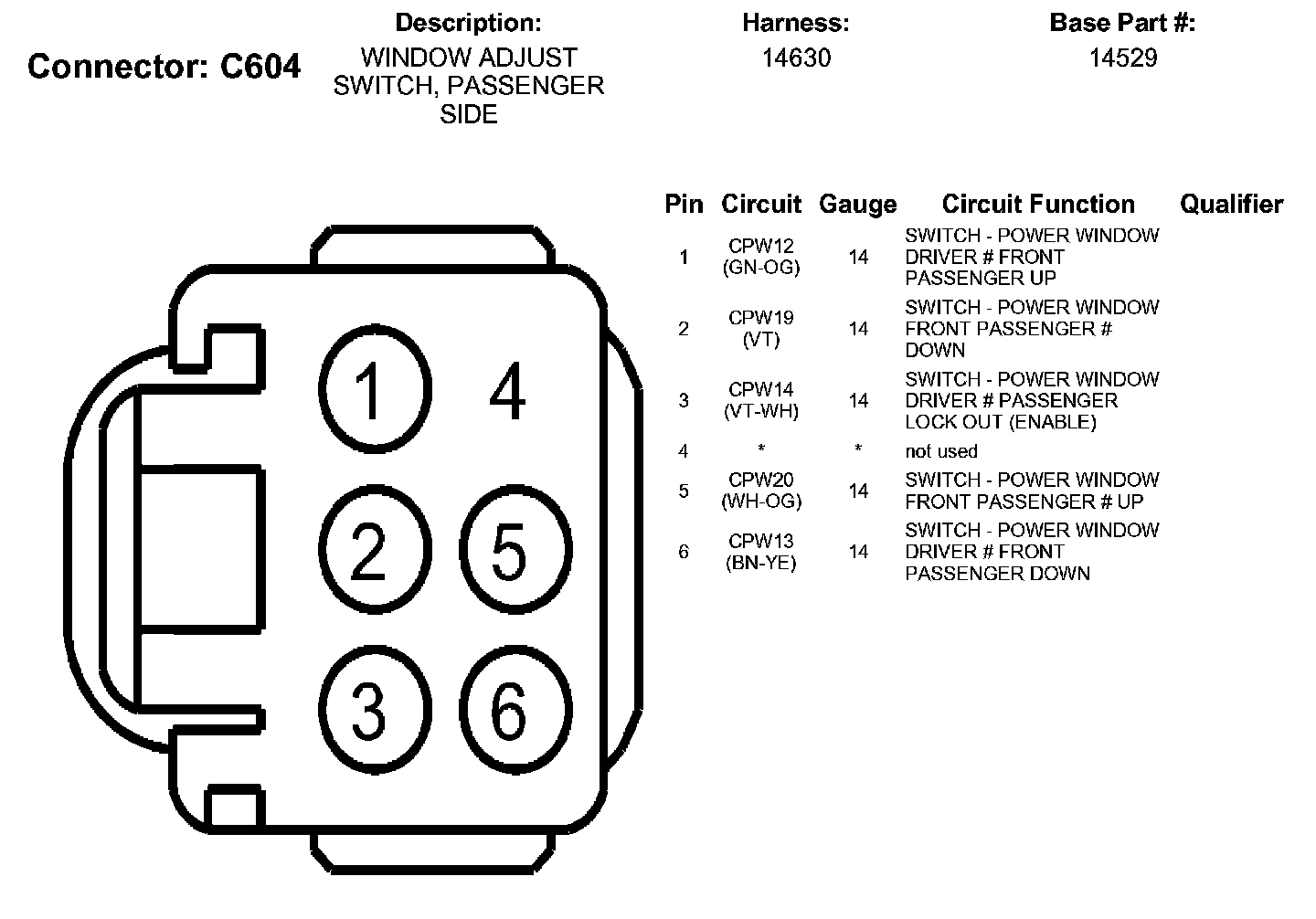 Window Adjust Switch, Passenger Side