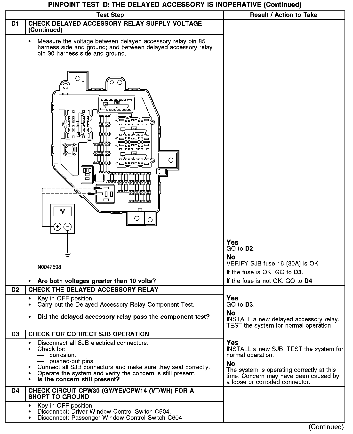 PINPOINT TEST D: THE DELAYED ACCESSORY IS INOPERATIVENormal Operation