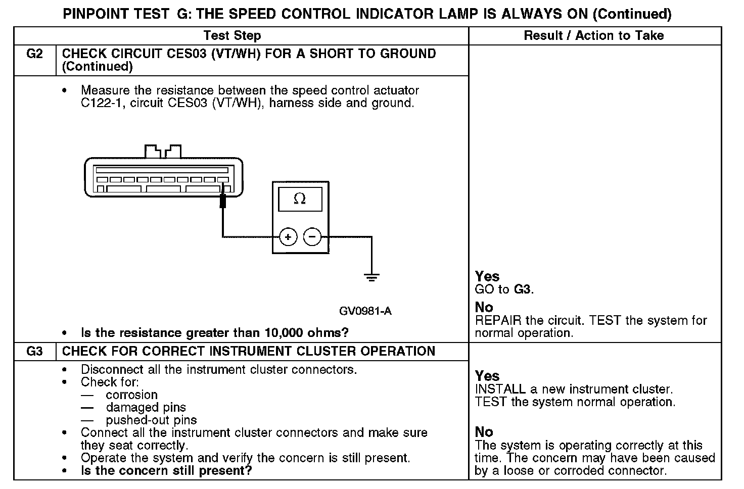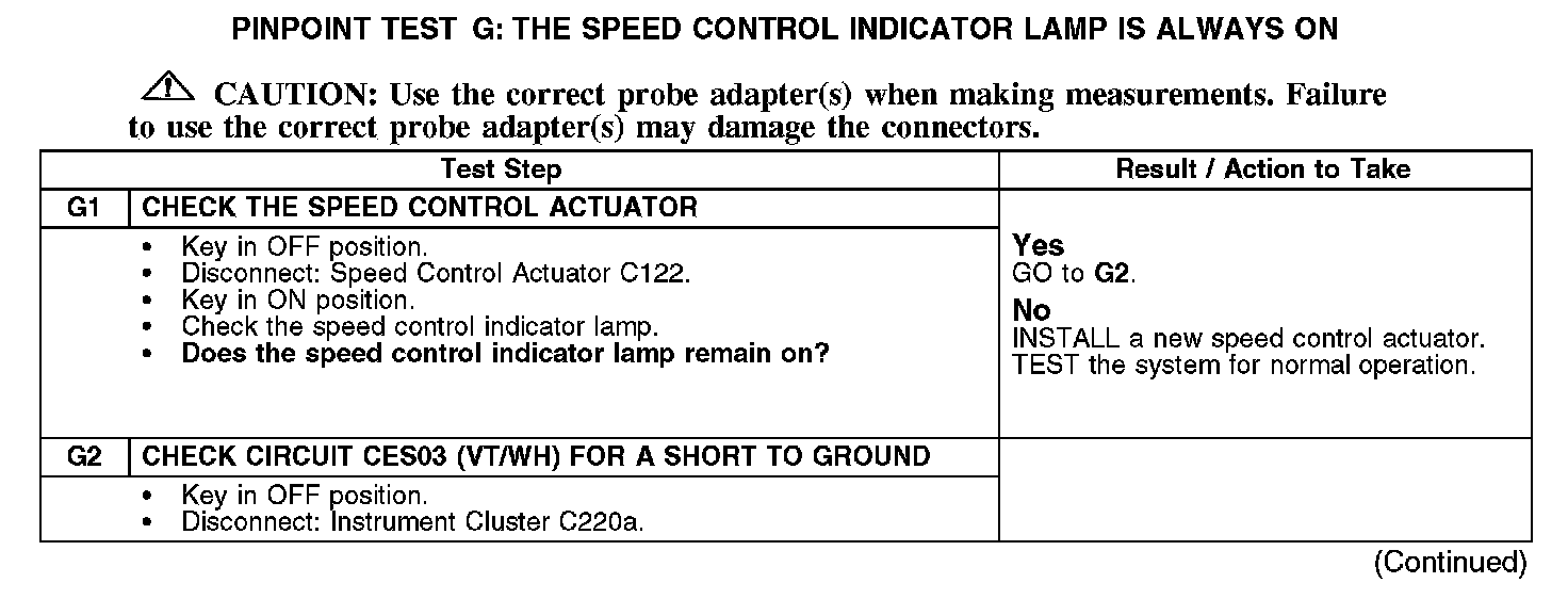 PINPOINT TEST G: THE SPEED CONTROL INDICATOR LAMP IS ALWAYS ONNormal Operation