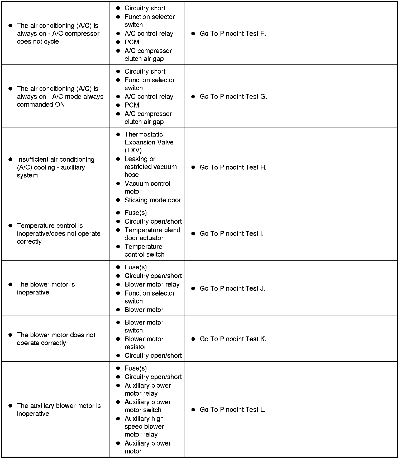 Climate Control SystemSymptom Chart - Climate Control Systems Symptom Chart - Climate Control Systems (Part 1):