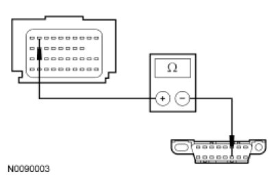 - Measure the resistance between the RCM C310b-10, circuit VDB04 (WH/BU), harness side and the DLC C251-6, circuit VDB04 (WH/BU), harness side.