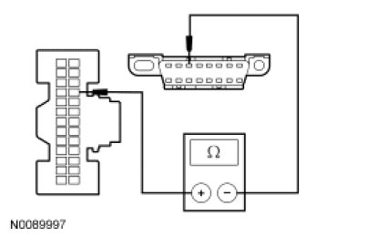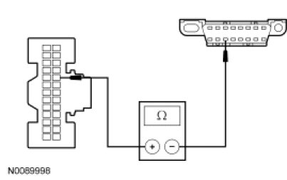 - Measure the resistance between the SJB C2280b-37, circuit VDB06 (GY/OG), harness side and the DLC C251-3, circuit VDB06 (GY/OG), harness side.