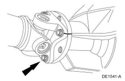 14. NOTE: The driveshaft flange yoke fits tightly on the pinion flange yoke. Never hammer on the driveshaft or any of its components to disconnect the yoke from the flange. Pry only in the area shown, with a suitable tool, to disconnect the yoke from the flange.