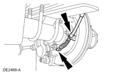 4. Disconnect the parking brake cable from the parking brake. Repeat for the opposite side. Position the cables aside.