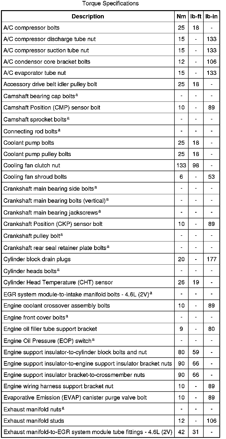 Torque Specifications