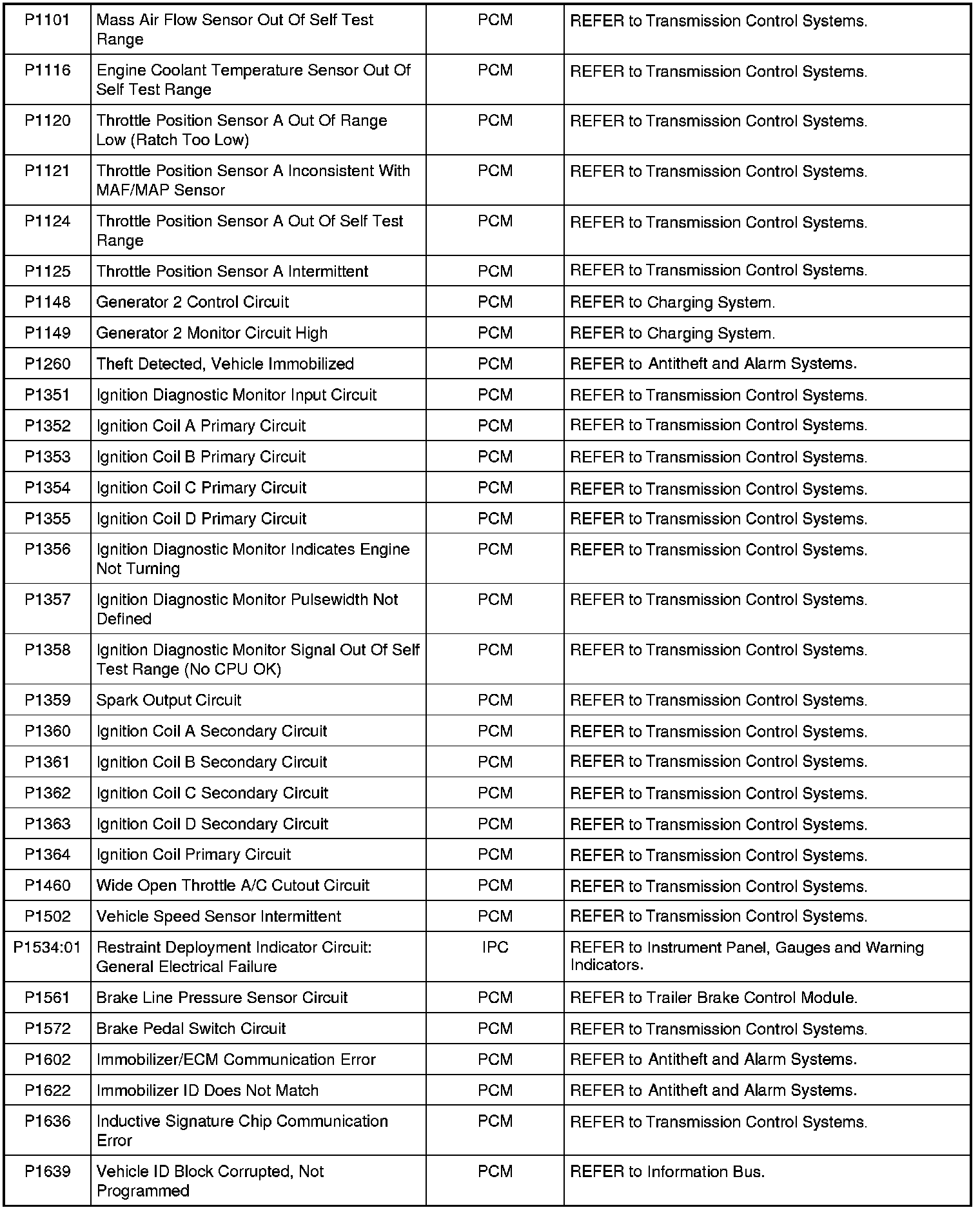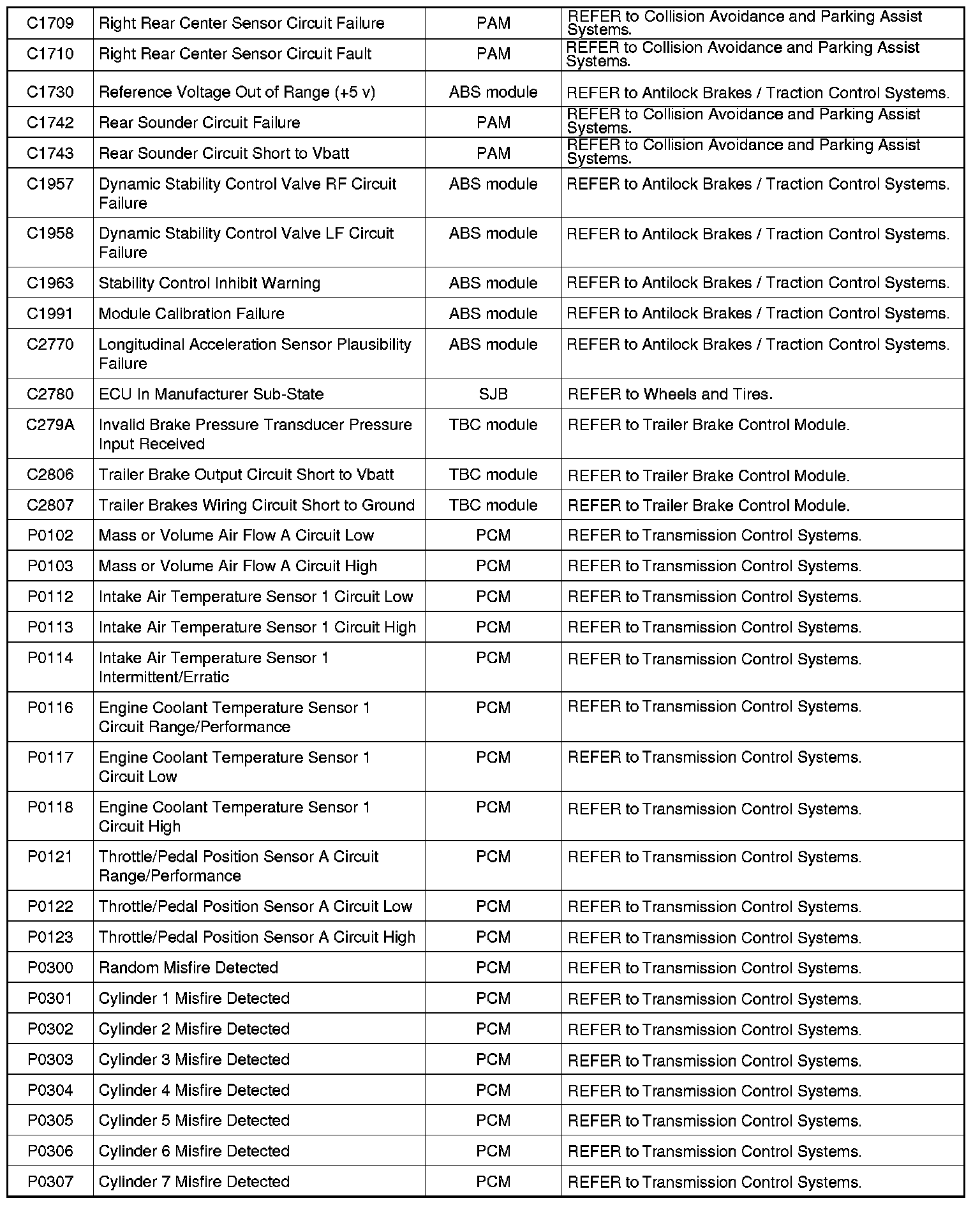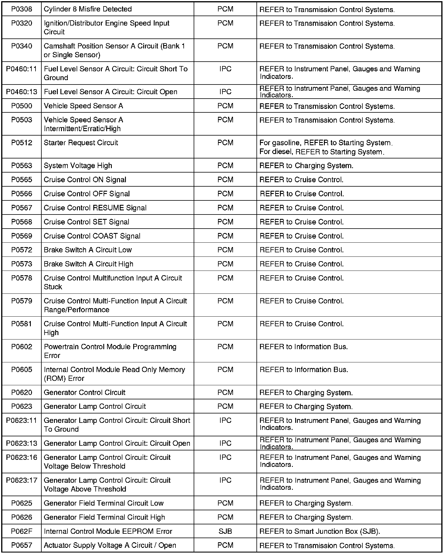 NOTE: Most powertrain (P-code) DTCs are diagnosed in Computers and Control Systems Information. If the P-code retrieved is not listed below, refer to Computers and Control Systems Information to continue diagnostics.