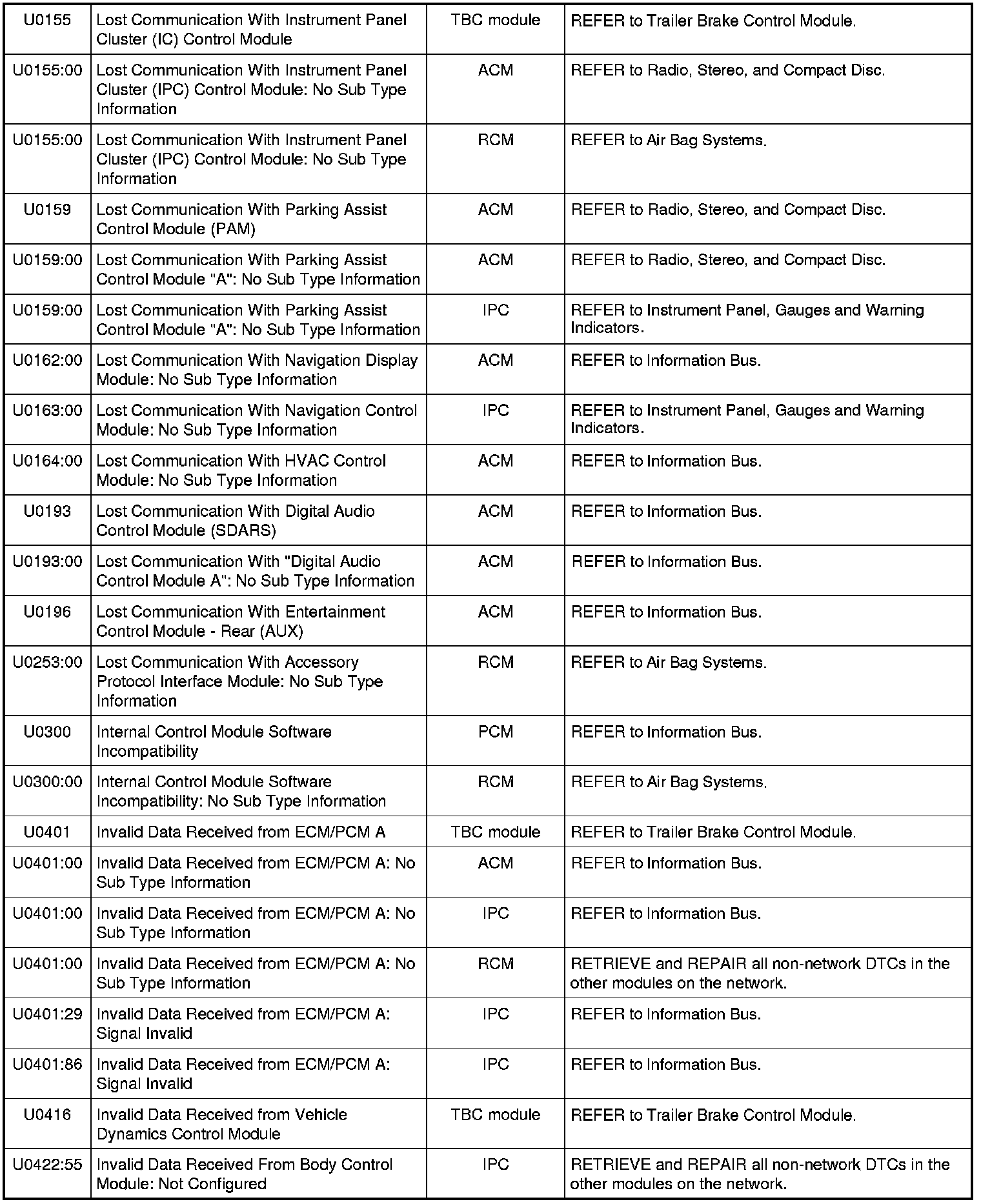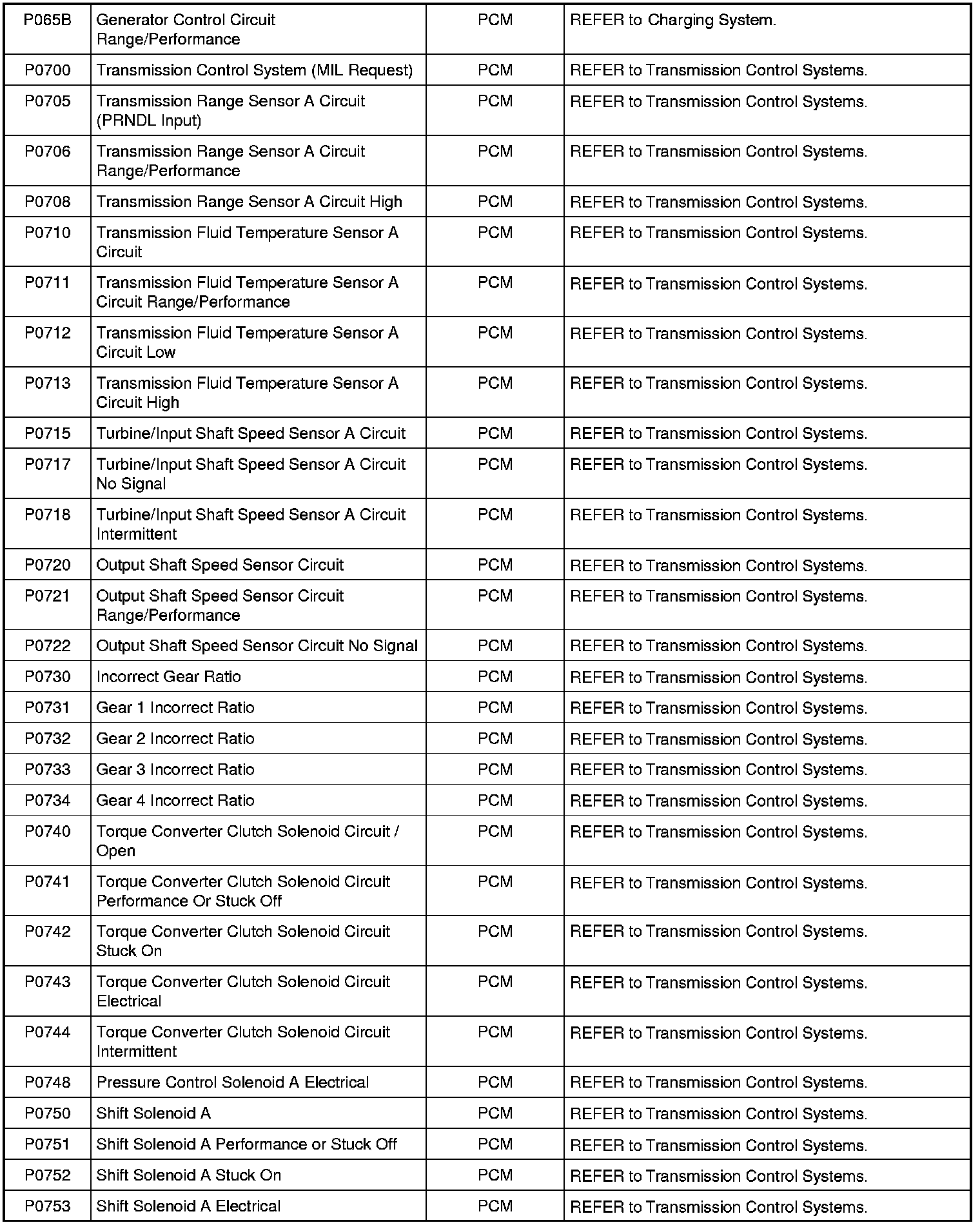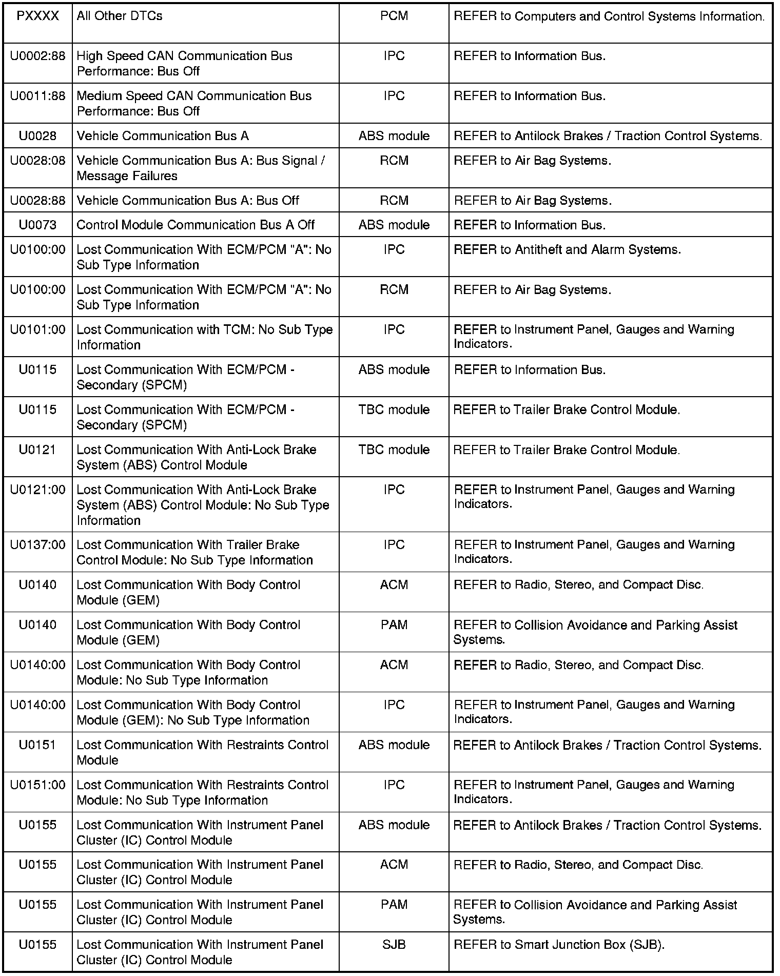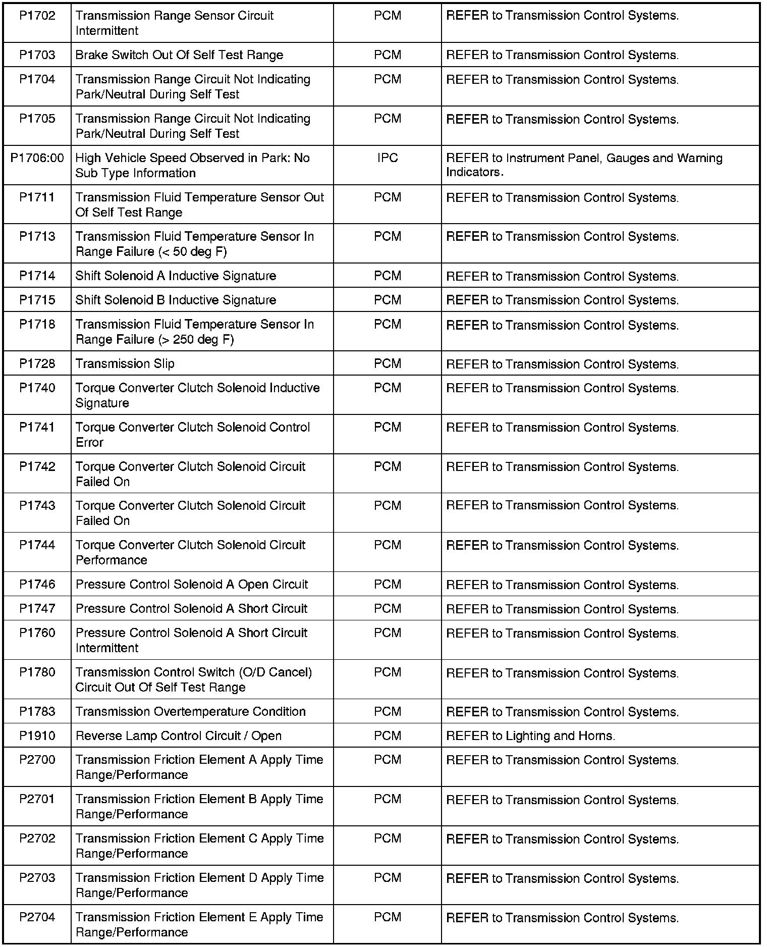 NOTE: Most powertrain (P-code) DTCs are diagnosed in Computers and Control Systems Information. If the P-code retrieved is not listed below, refer to Computers and Control Systems Information to continue diagnostics.