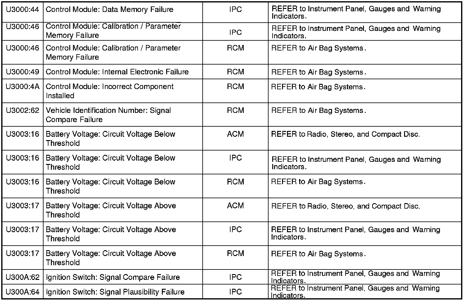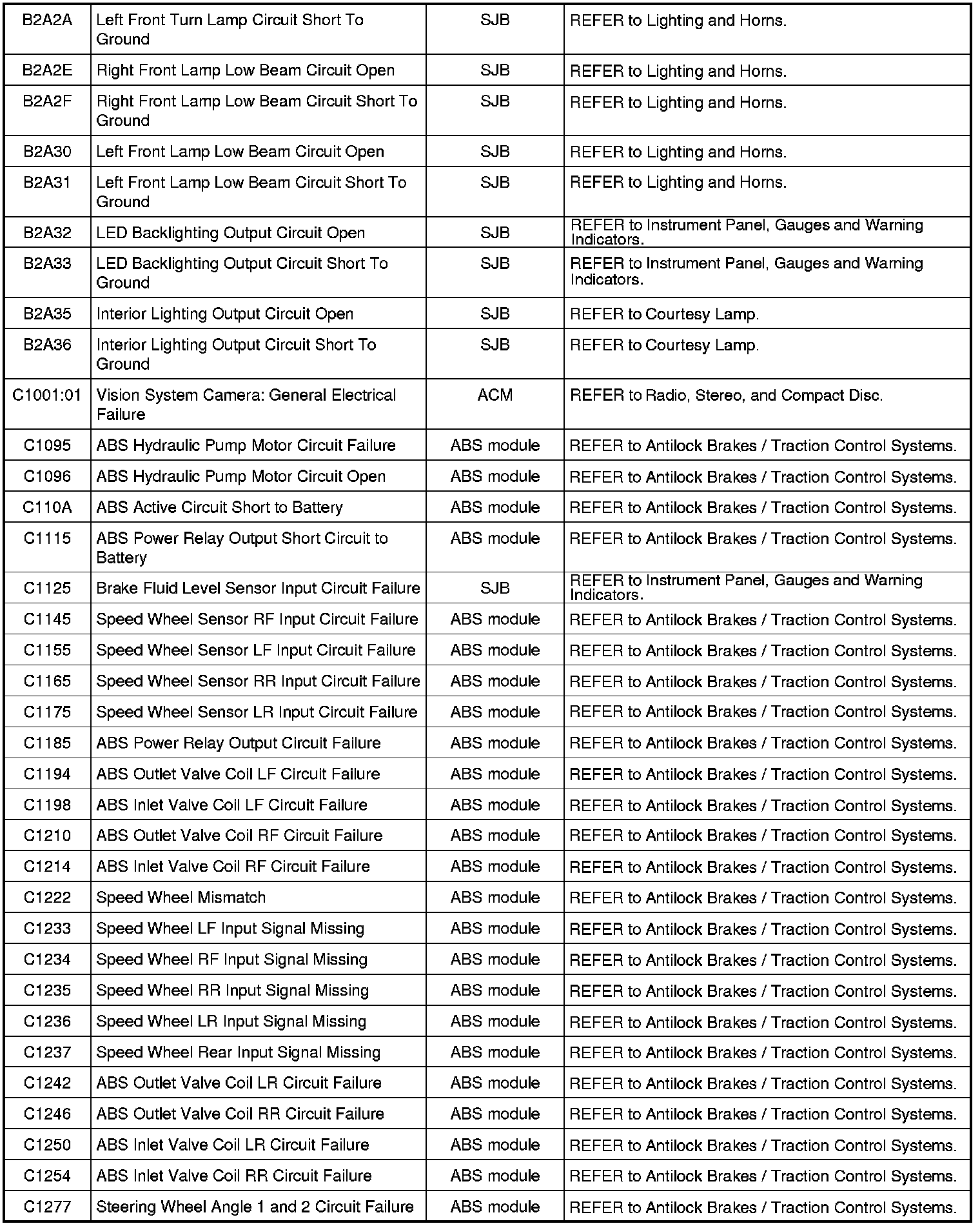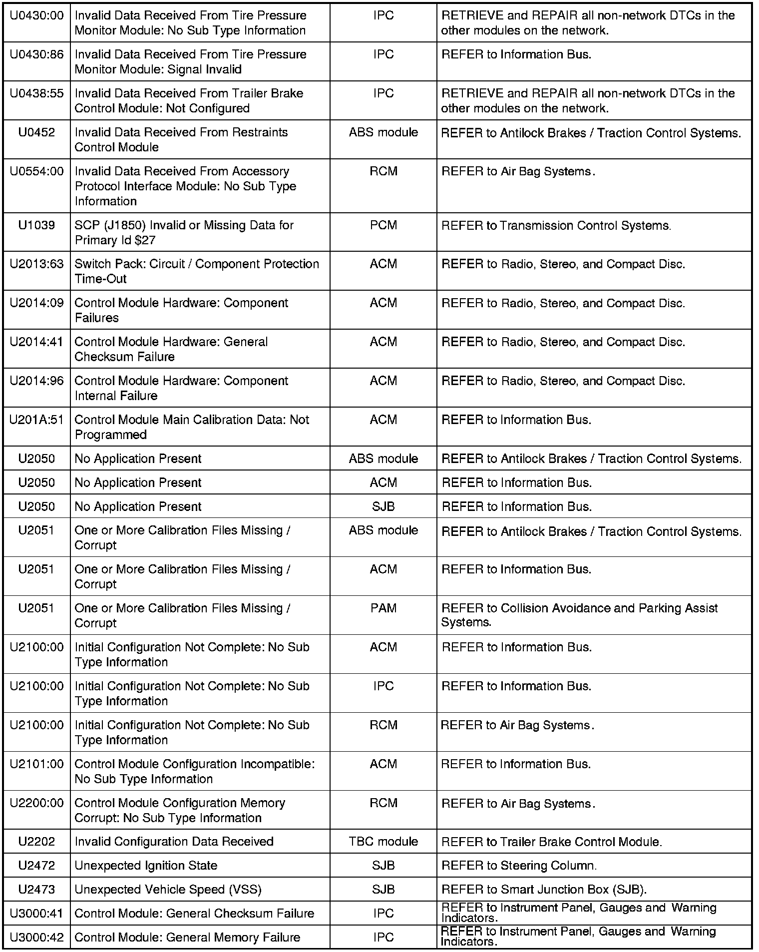 NOTE: Some of these modules utilize a 5-character DTC followed by a 2-character failure-type code. The failure-type code provides information about specific fault conditions such as opens, or shorts to ground. Continuous memory DTCs have an additional 2-character DTC status code suffix to assist in determining DTC history.