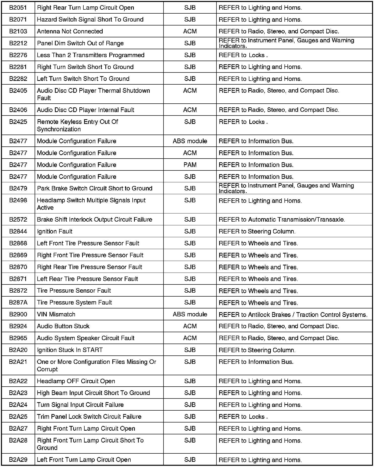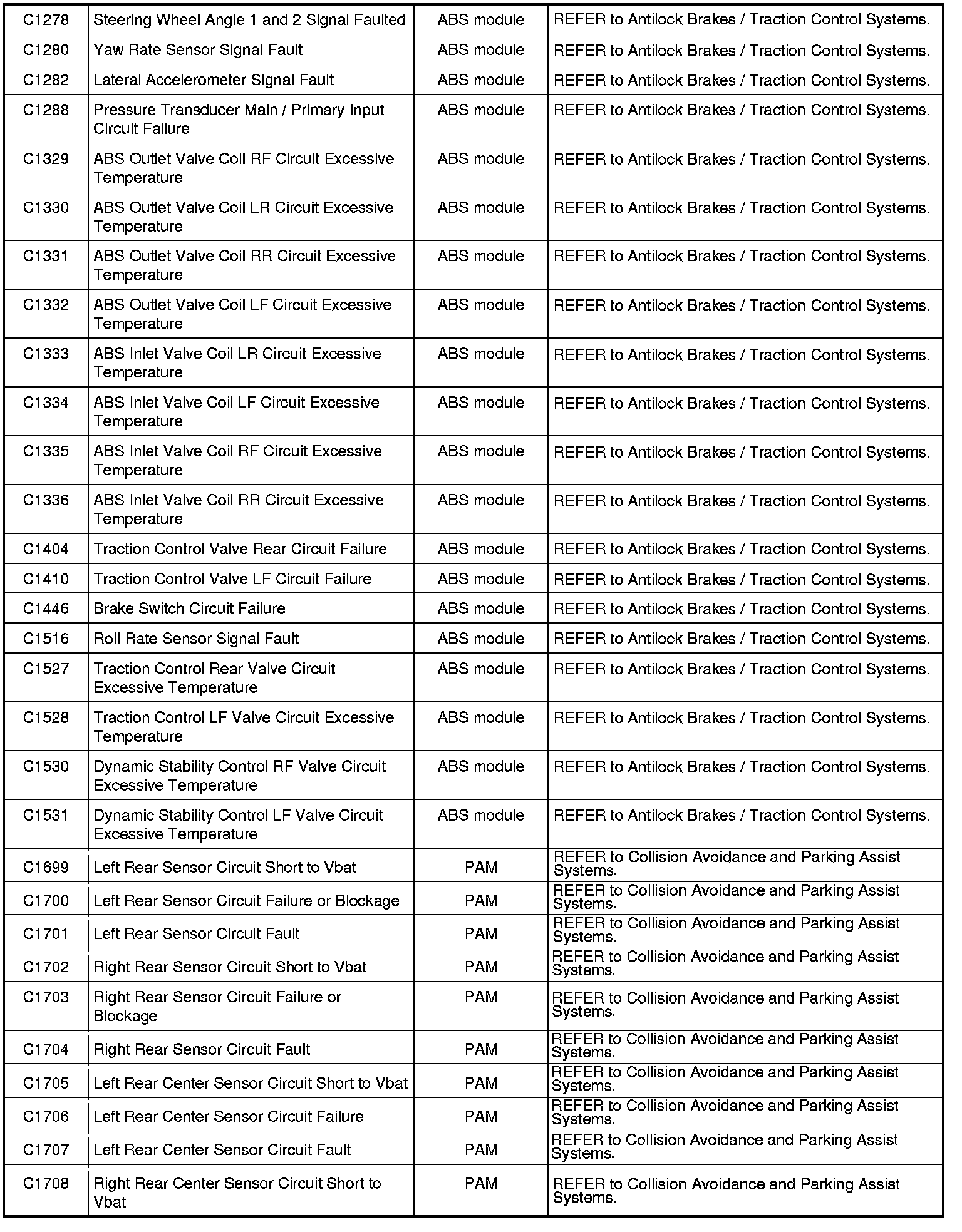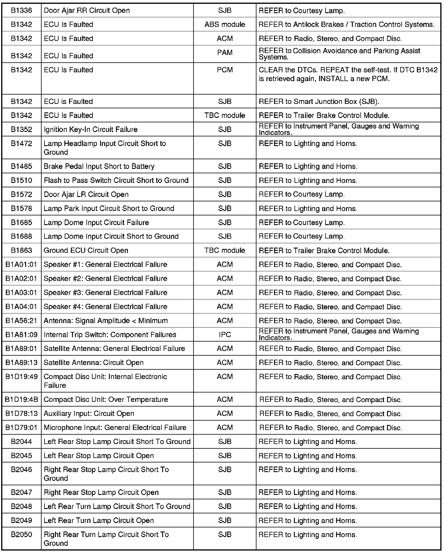 NOTE: Some of these modules utilize a 5-character DTC followed by a 2-character failure-type code. The failure-type code provides information about specific fault conditions such as opens, or shorts to ground. Continuous memory DTCs have an additional 2-character DTC status code suffix to assist in determining DTC history.