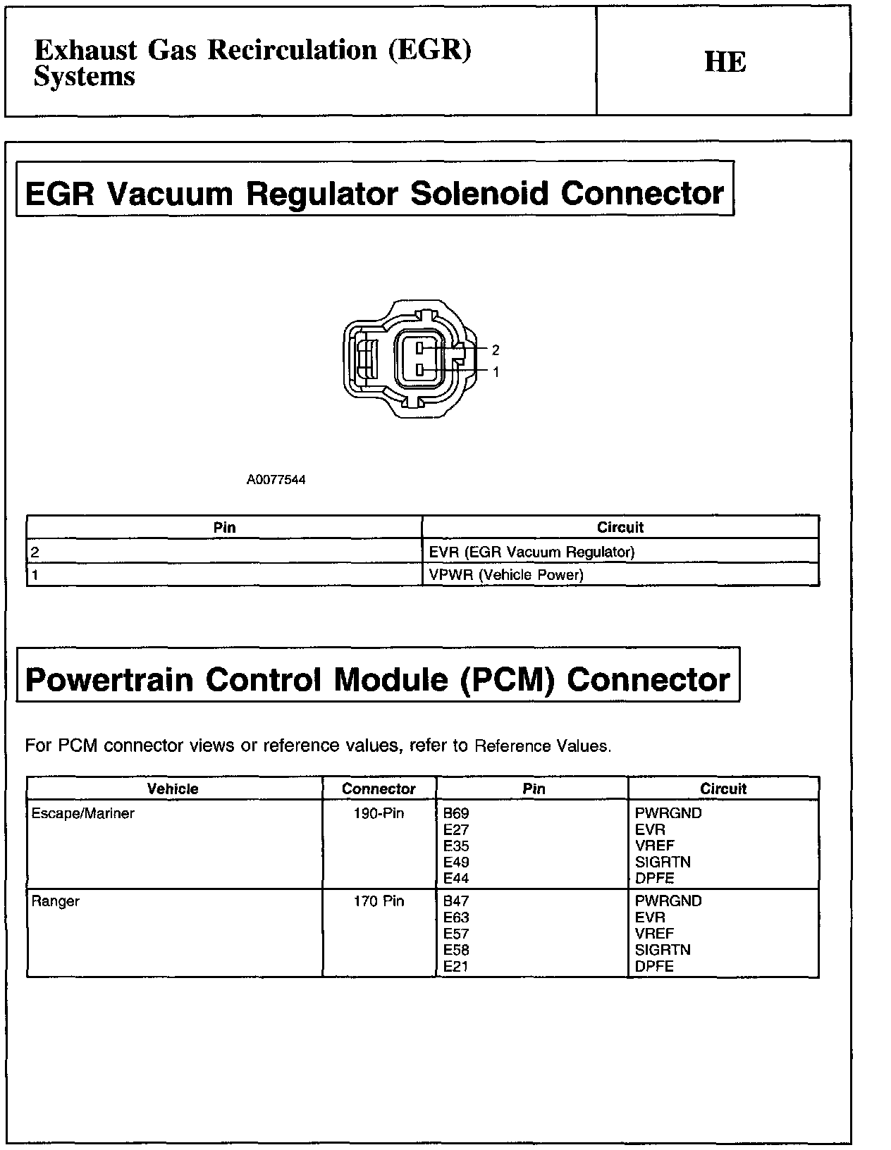 PINPOINT TEST HE: EXHAUST GAS RECIRCULATION (EGR) SYSTEMSDifferential Pressure Feedback EGR Sensor Connector: