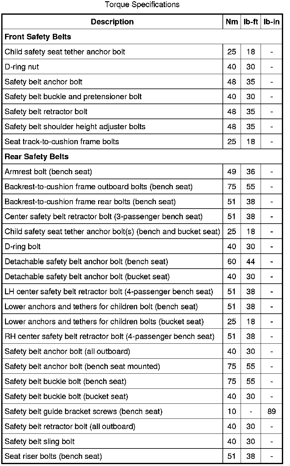 Seat Belt Systems: Specifications