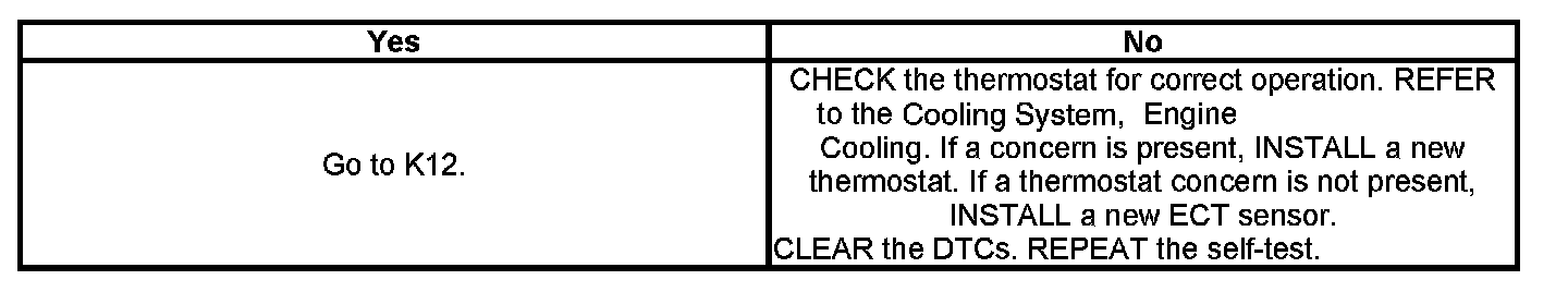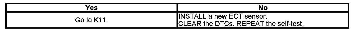 K10 : CHECK THE ECT SENSOR OPERATION