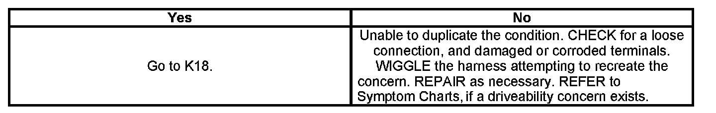 PINPOINT TEST K: ENGINE COOLANT TEMPERATURE (ECT) SENSORFlow Chart: