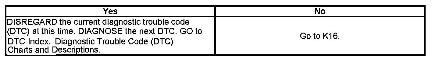NOTE: Refer to DTC Index, Diagnostic Trouble Code (DTC) Charts and Descriptions for possible causes and additional DTC description information. Testing and Inspection