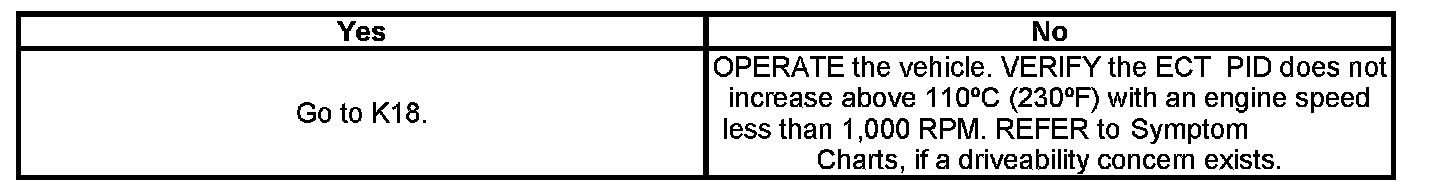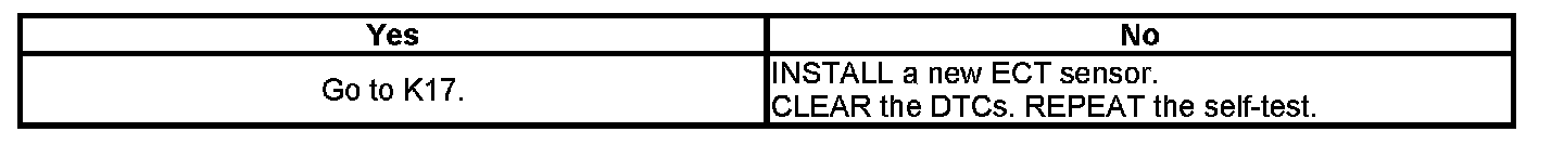 K16 : CHECK THE ECT SENSOR OPERATION