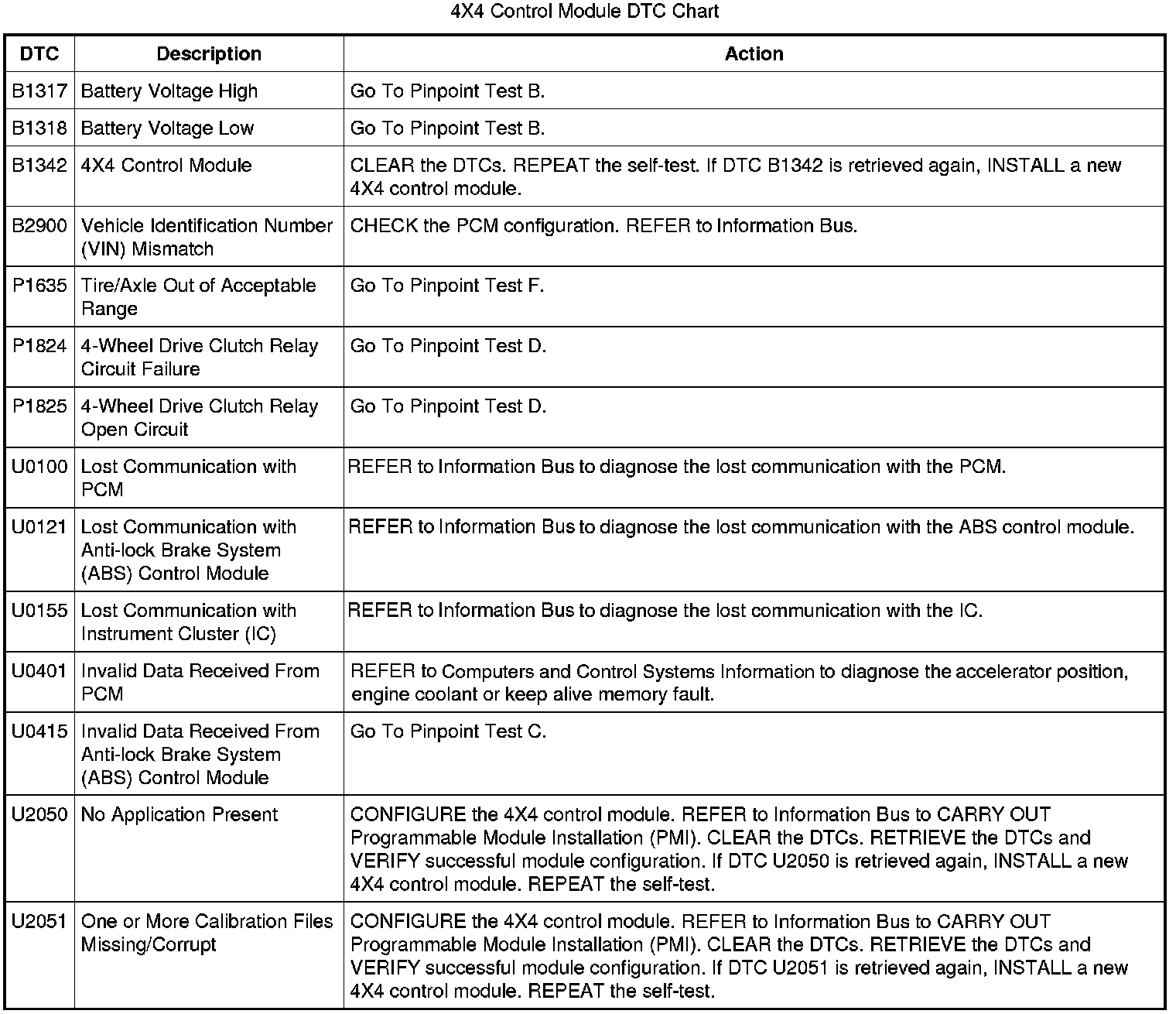 B1317-B2900 / P1635-P1825 / U0100-U2051: