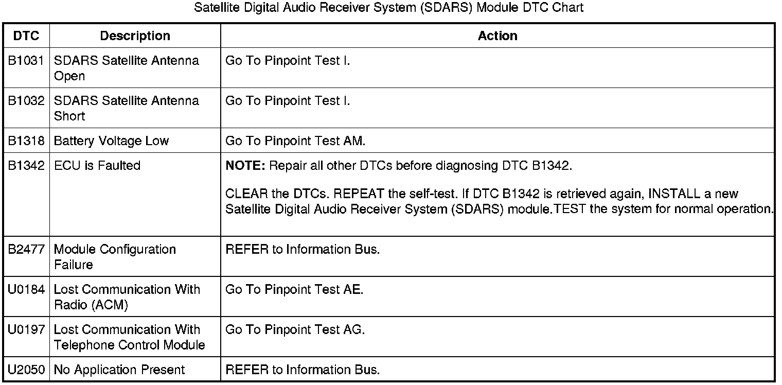 Satellite Digital Audio Receiver System (SDARS) Module DTC Chart