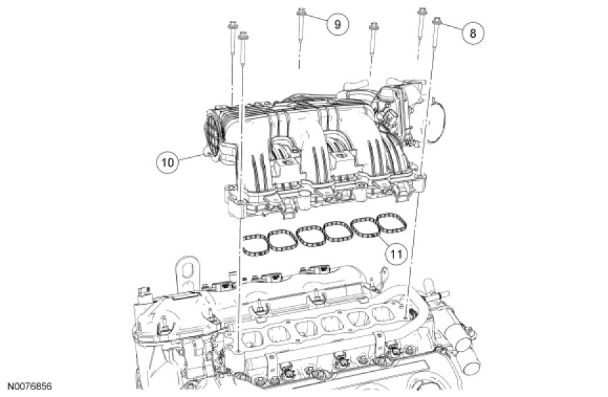 1. NOTICE: If the engine is repaired or replaced because of upper engine failure, typically including valve or piston damage, check the intake manifold for metal debris. If metal debris is found, install a new intake manifold. Failure to follow these instructions can result in engine damage.