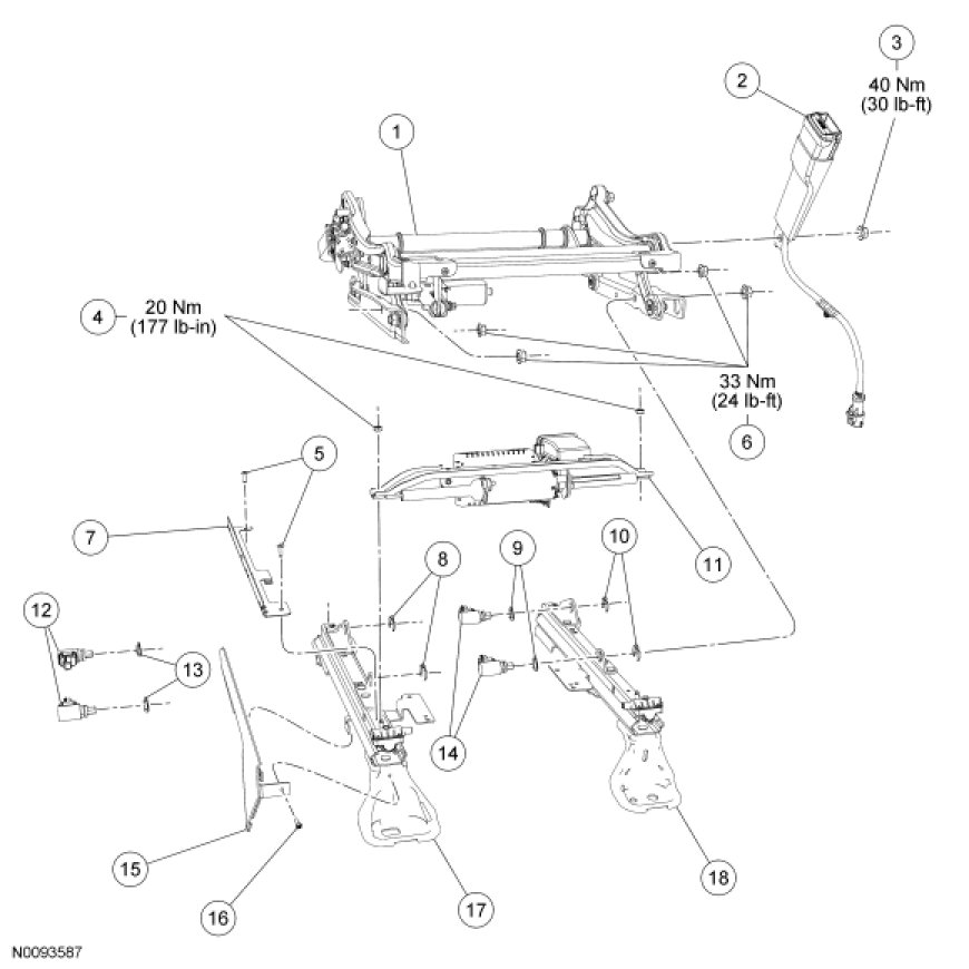 5. NOTE: When installing the side plate to the seat track rail, 2 new OCS weight sensor nuts must be installed.