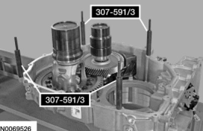 35. Remove the Differential/Transfer Gear Bearing Shim Gauge 307-591/1 and 307-591/2 from the differential and transfer shaft assemblies.