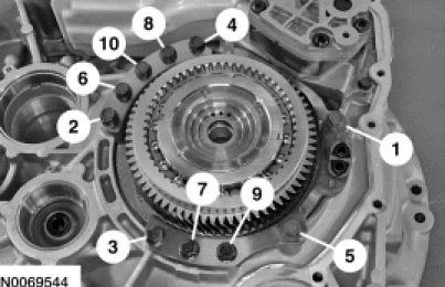 53. Install the stator support bolts. Tighten in the sequence shown.