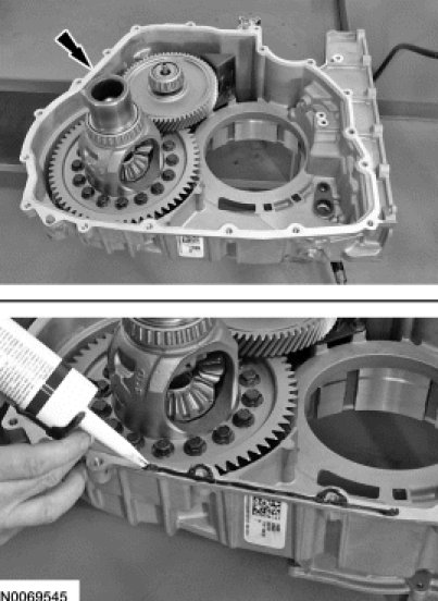 Apply a bead of silicone sealant to the machined surface of the transaxle case.