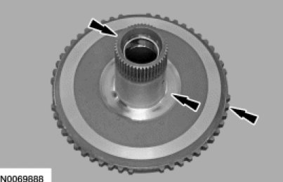 7. Clean and inspect the front planetary carrier hub for damage or wear and install new, if necessary.