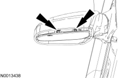 2. WARNING: Place a shop towel between the hands and the exterior mirror glass for protection in case of glass breakage during mirror service. Failure to follow this instruction may result in serious personal injury.
