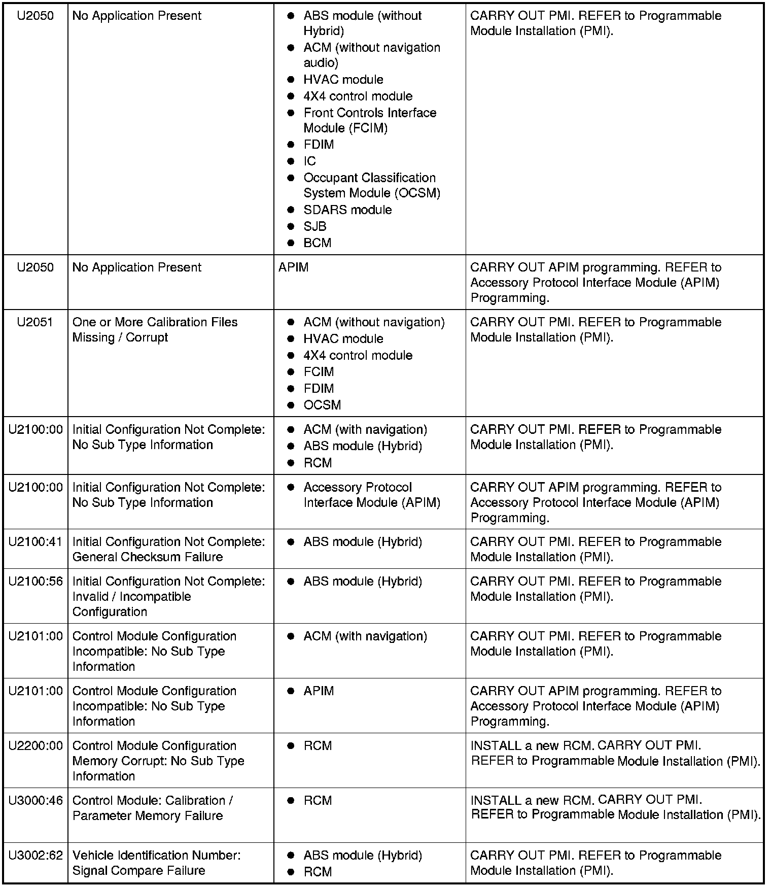 B2477-B2900 / P0602-P1639 / U201A:51-U0300:51: