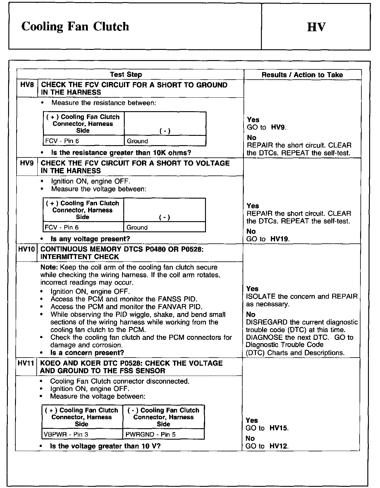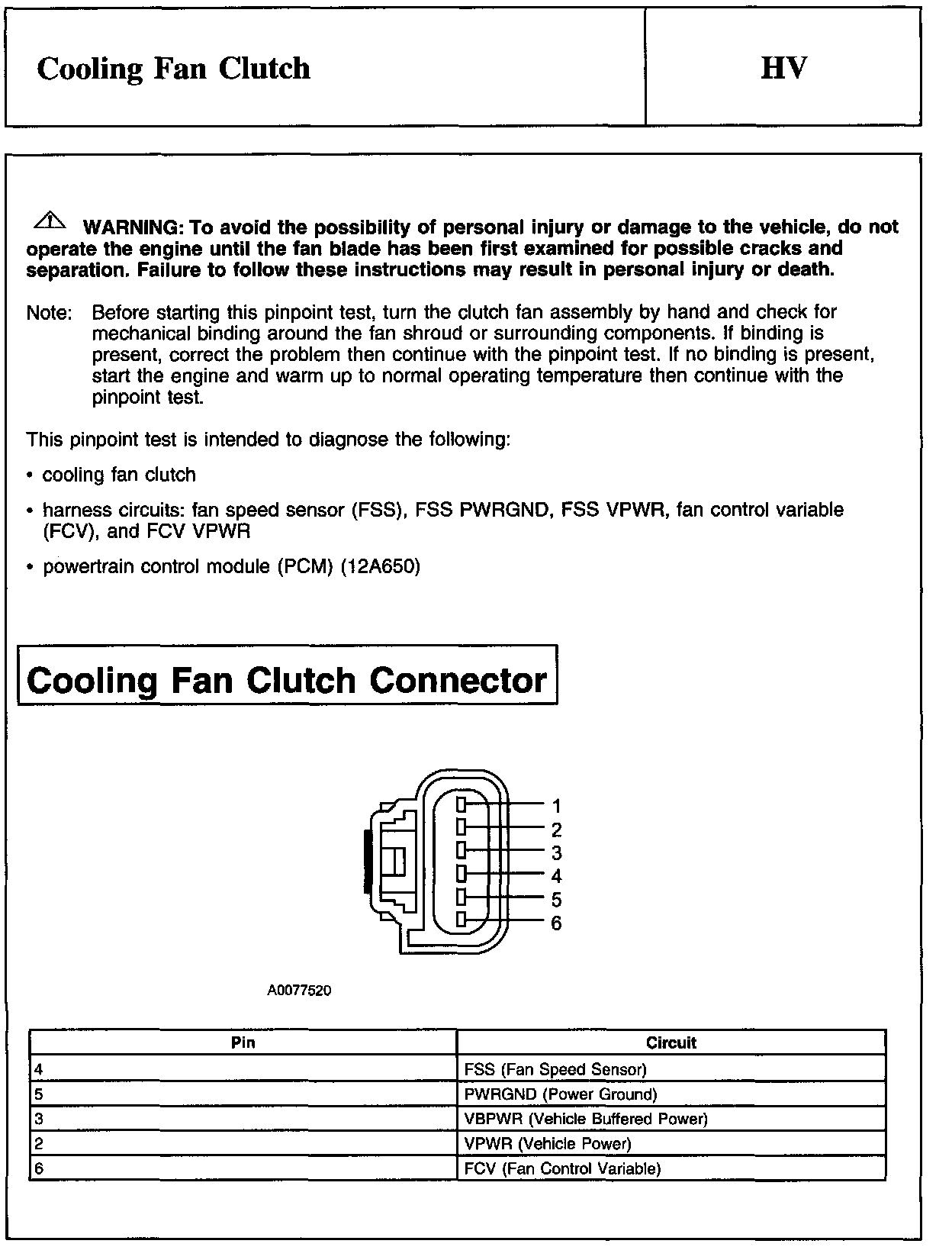 PINPOINT TEST HV: COOLING FAN CLUTCH