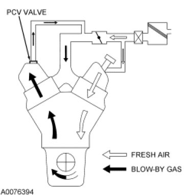 The PCV system cycles crankcase gases back through the intake air system into the engine where they are burned. The PCV valve regulates the amount of ventilated air and blow-by gases to the intake manifold.