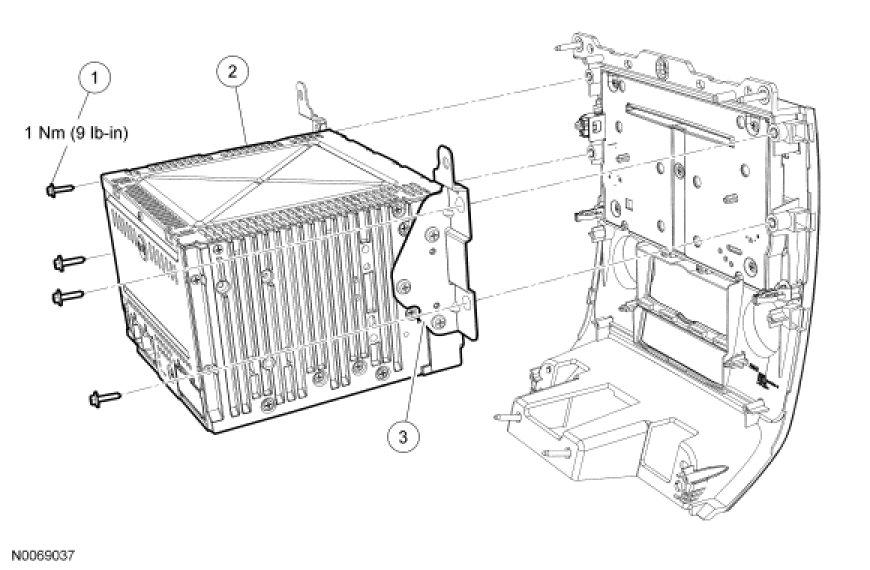 - To install, tighten to 1 Nm (9 lb-in) (all except navigation).