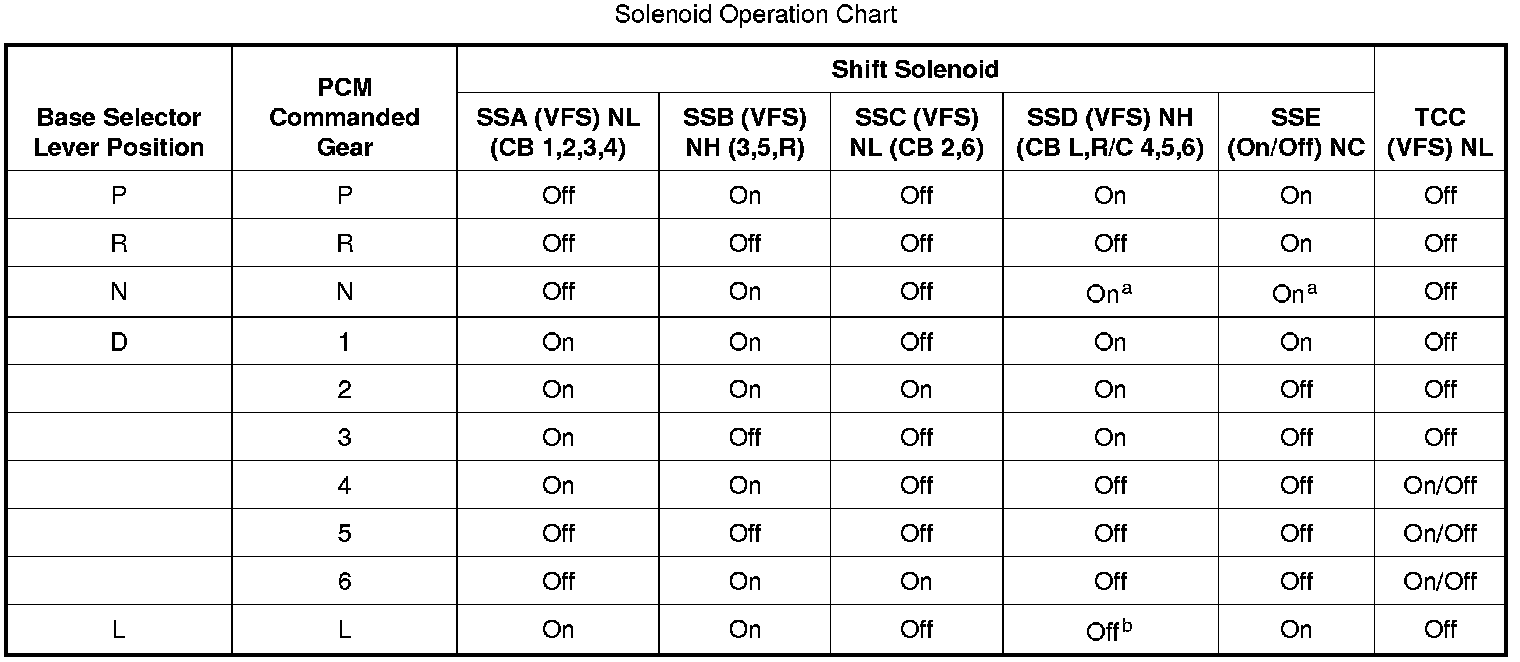 Solenoid Operation Chart: