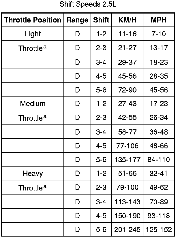 Shift Speeds 2.5L: