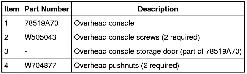 1. Open the overhead console storage door to access the screws.