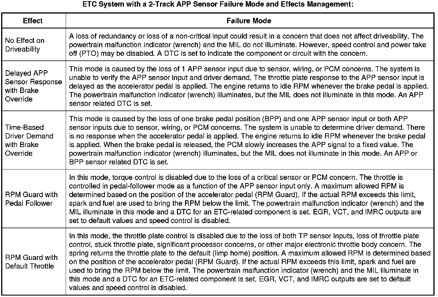ETC System With A 2-Track APP Sensor Failure Mode And Effects Management::