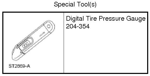 NOTE: Use only the Digital Tire Pressure Gauge any time tire pressures are measured to be sure that accurate values are obtained.